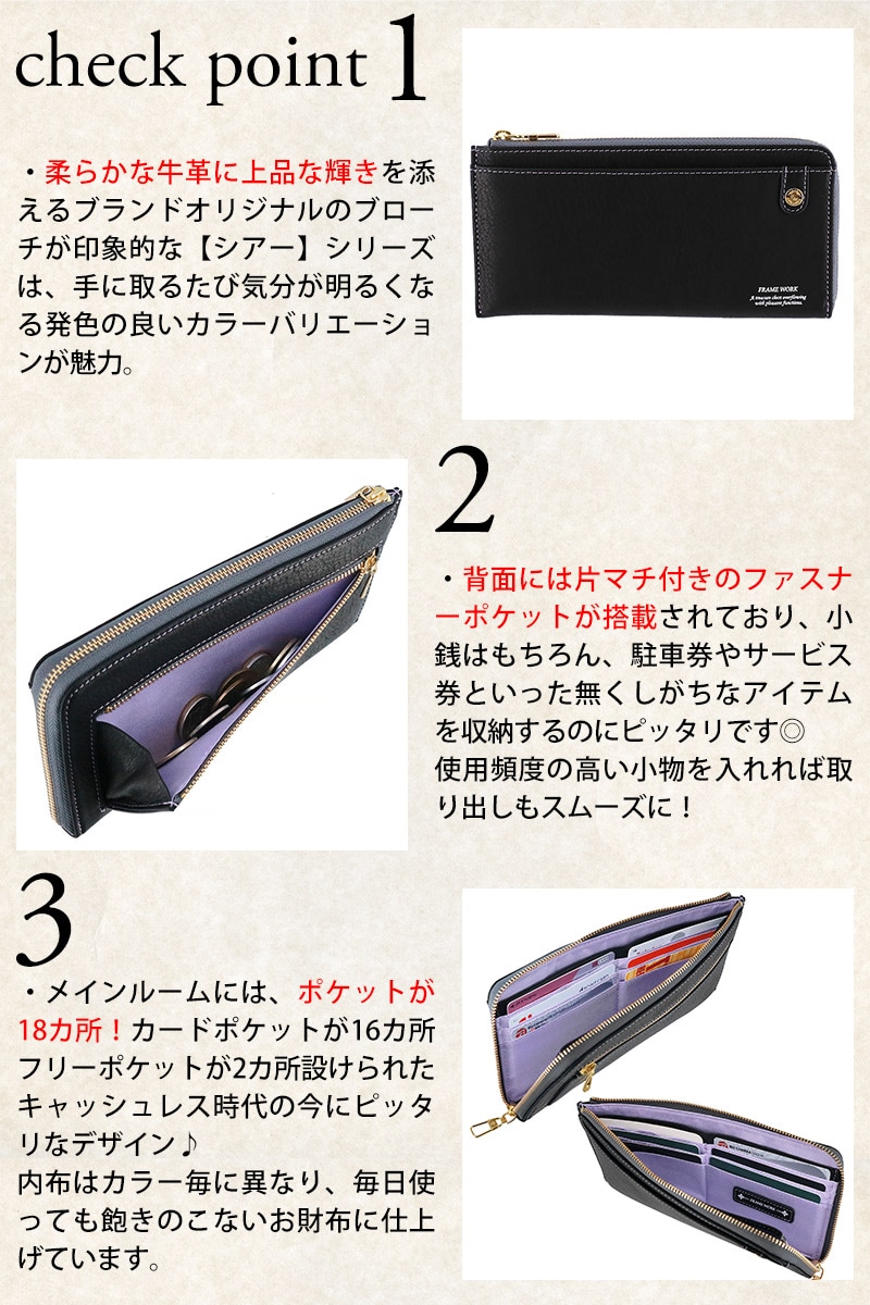 フレームワーク 財布 長財布 L字ファスナー 薄い 本革 小銭入れあり FRAME WORK シアー 45082 レディース ブランド 牛革 送料無料 誕生日プレゼント ギフト 【正規代理店】 4.ラベンダー -64ラッピング可能