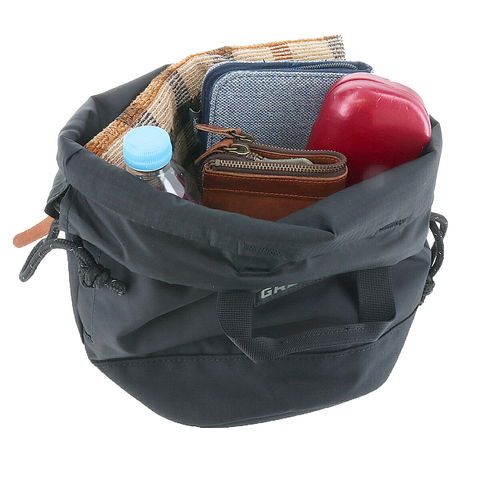 巾着部分のコードを使ってショルダーポーチのように使うもよし、ウェビングハンドルでトートバッグのようにして使うもよし。この収納力の大きい巾着バッグの使い方は無限大です。