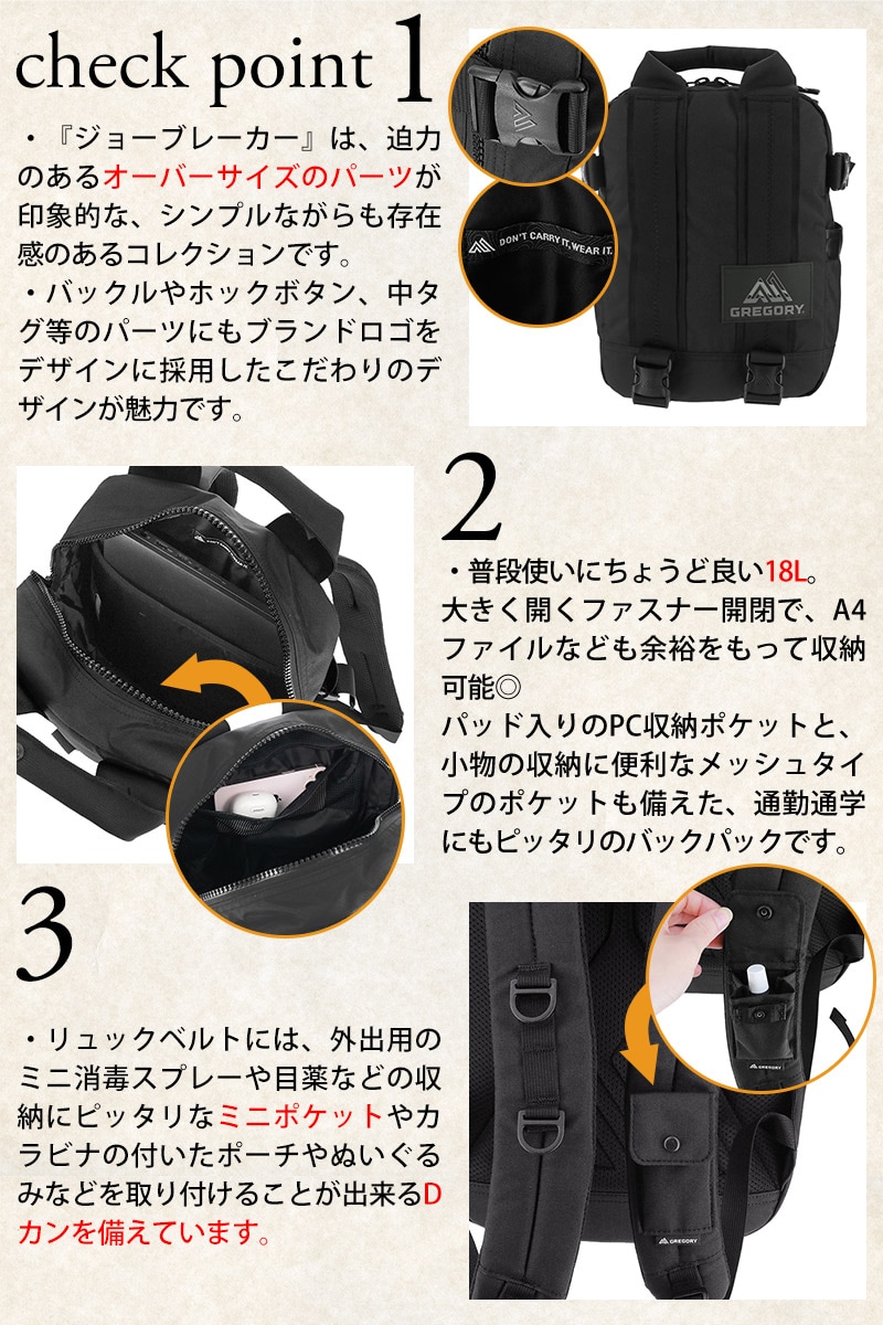 グレゴリー リュック デイパック バッグ トートバッグ 2WAY GREGORY ジョーブレーカーバックパック18 18L A4 メンズ レディース キッズ 送料無料 誕生日プレゼント ギフト 【正規代理店】 1.ジェットブラック -190207130188ラッピング可能