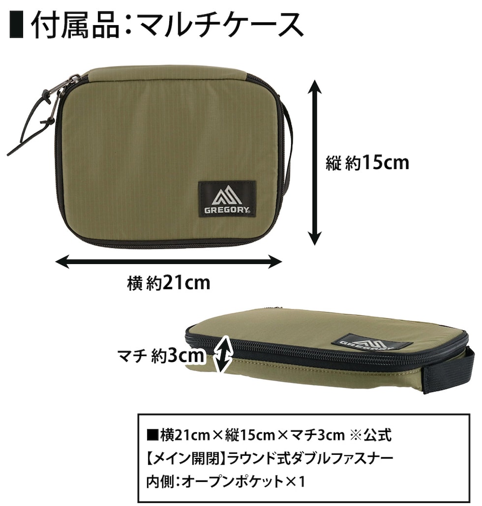 | サイズ(約) ※当店実寸値 | 公式本体サイズ 横35cm×縦44cm×マチ17cm 自社採寸本体サイズ 横29cm×縦43cm×マチ13cm(+フロントポケット4cm) 【リュックベルト】~87cm 【容量】26L マルチケースサイズ 横21cm×縦15cm×マチ3cm(公式) | ||