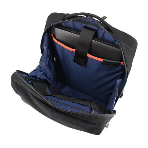 ・2気室構造で、前方後方どちらの収納スペースにもPCポケットを搭載。クッション性が高くデバイス機器を安全に持ち運べます。