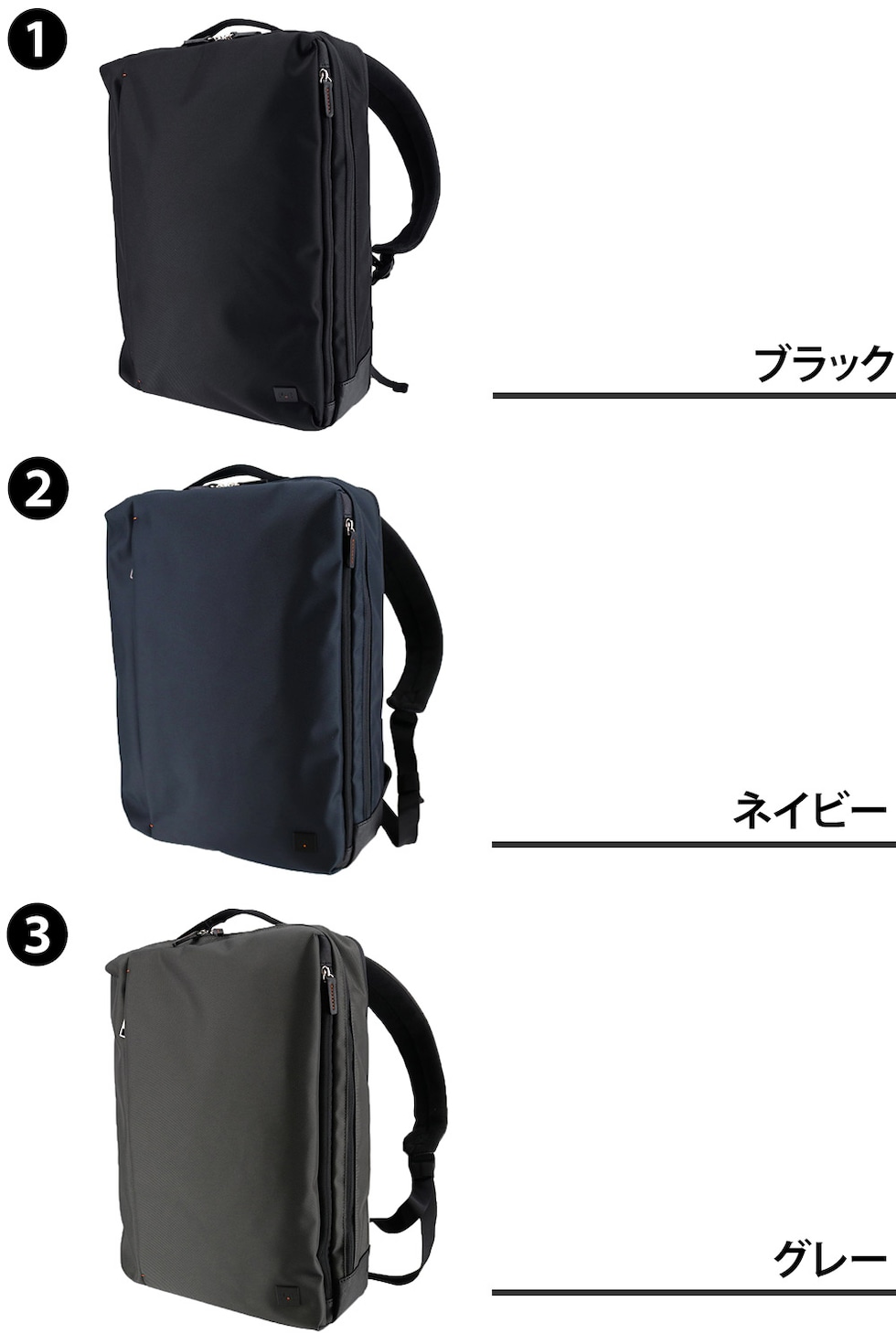 | カラー | 1.ブラック(-blk) 2.ネイビー(-nvy) 3.グレー(-gry) | ||