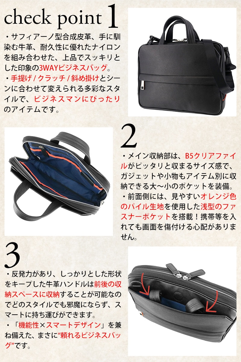| 商品 | サフィールII 3WAYビジネスバッグ クラッチバッグ ショルダーバッグ B5 | ||
