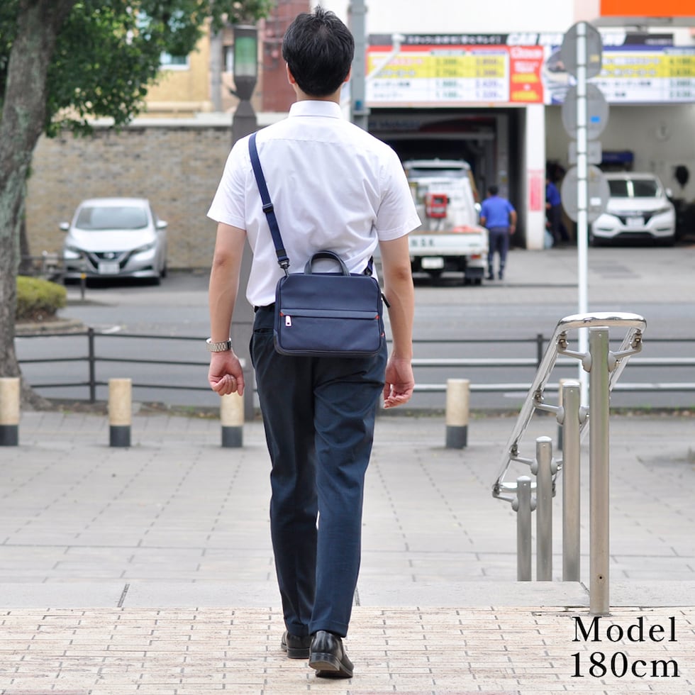 B5クリアファイルがぴったりと収まるコンパクトなビジネス対応バッグ。
