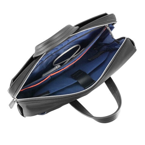 15インチまでのノートPCやタブレット、A4ファイルが入るメイン収納部はL字開閉で大事な資料も折り曲げずに出し入れ可能。