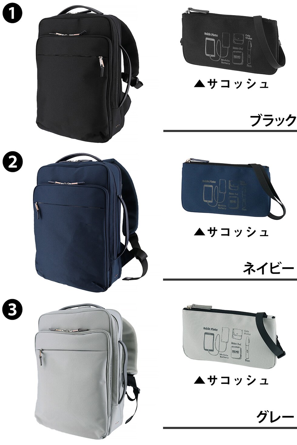 | 備考 | 【メイン開閉】ダブルファスナー(ラウンド式) 外側/ 前面ファスナーポケット(大)×1(メッシュオープンポケット×4、ペン挿し×2、二重リング×1) 前面ファスナーポケット(中)×1 背面ファスナーポケット×1 前方ルーム/ パッド入りPCポケット×1(横26cm×縦30cm、ボア素材、マジックテープ開閉) ファスナーポケット×2 オープンポケット×1 メッシュオープンポケット×4 ボトルホルダー×2(ループ型) Dカン×2 後方ルーム/ PC収納可能(パッド入りボア素材) 付属/ バネ式キーリング×1 サコッシュポーチ×1(ホックポケット×1、全面パッド入り) ショルダーストラップ×1 その他機能/ バネ式キーリングは前面ファスナーポケット(大)内の二重リングに取り付け可能 サコッシュポーチは前方ルーム内のDカンに取り付け可能&単体での使用も可能 スーツケースにセットアップ可能(ホックで固定可能) バッグトップ・サイドにハンドル搭載 底鋲 キーワード : ISIT デイパック 20代 30代 40代 50代 フォーマル 耐久性 水に強い 撥水 a4サイズ 仕事 出張 旅行 トラベル 高機能性 ノートPC pc パソコン タブレット 13インチ 11インチ 周辺機器 ガジェット 収納可能 自立 クッション性 キャリーオン 黒 クロ 紺 コン 無地 モノトーン シンプル タウンユース デイリーユース マルチユース 人気 定番 スマート スタイリッシュ ストリート スポーツ 毎日バッグ スクール 学校 大容量 大きめ 誕生日 オススメ おすすめ プレゼント ギフト メンズ レディース 男性 女性 通勤 通学 ビジネス 学生 ブランド ロゴ ニューバッグワカマツ ニューバックワカマツ | ||