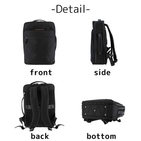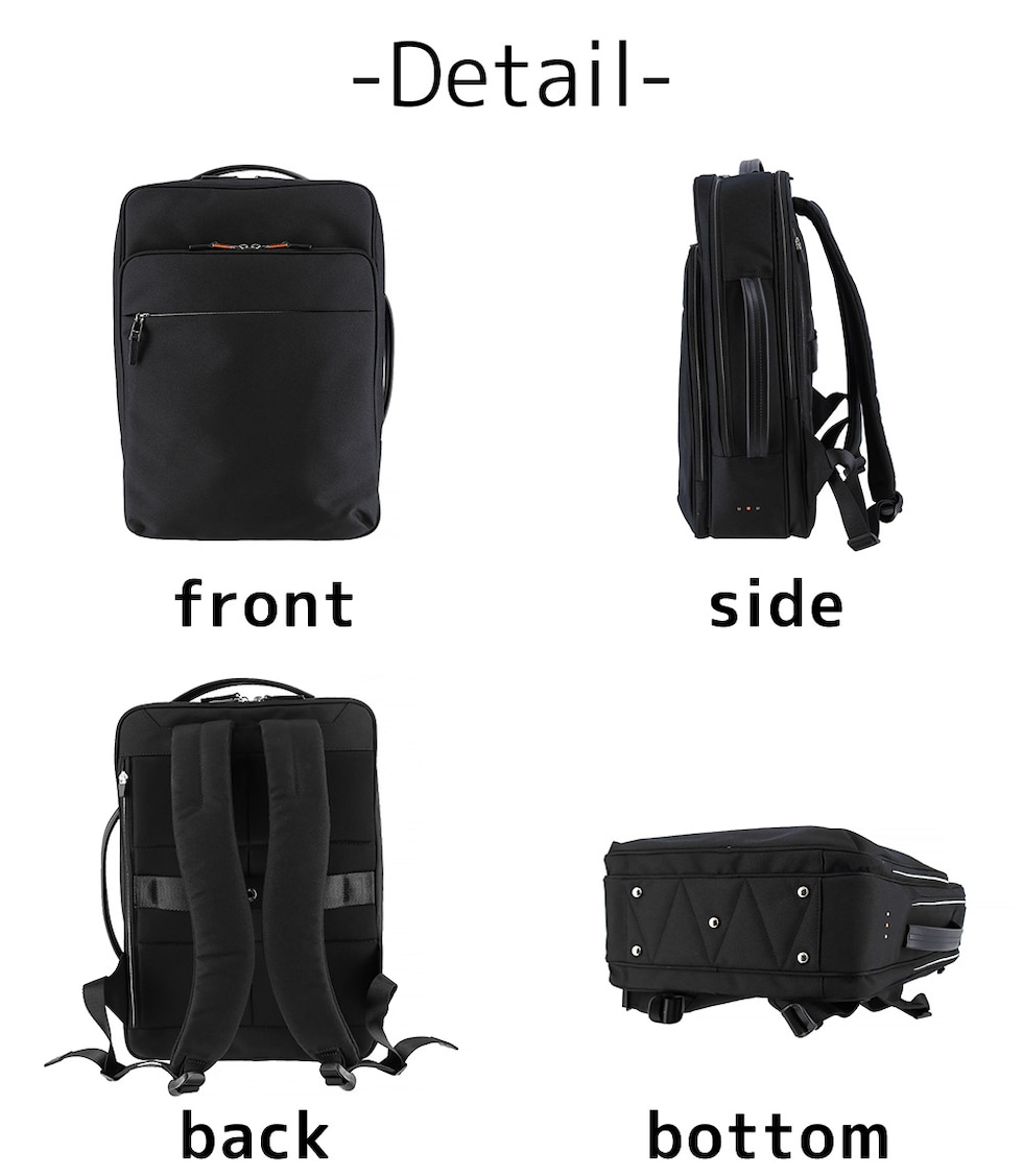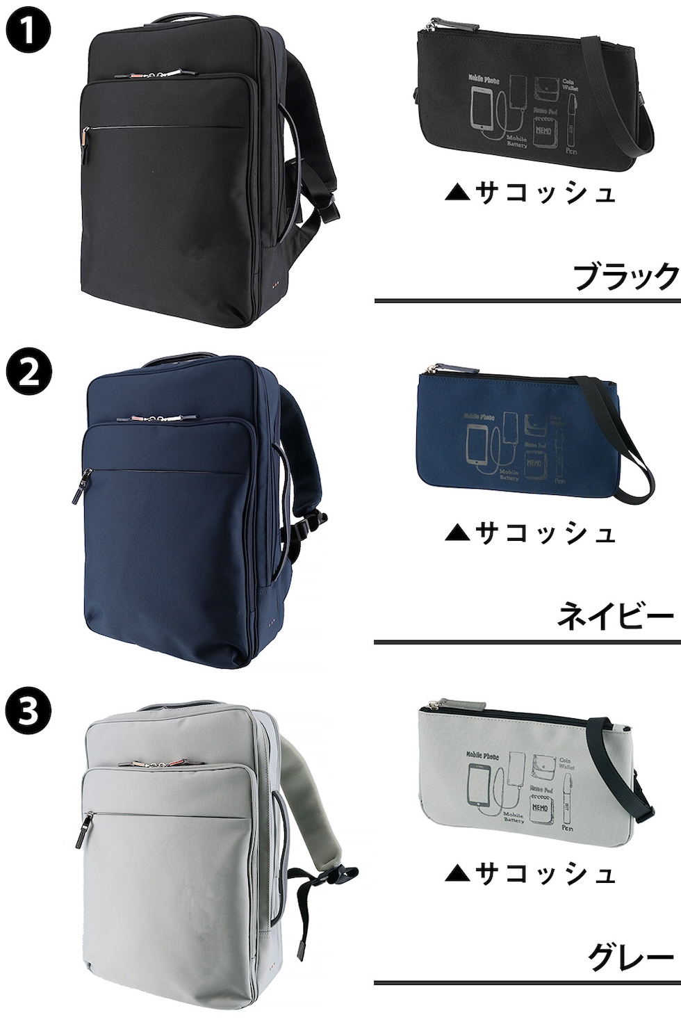 | 備考 | 【メイン開閉】ダブルファスナー(ラウンド式) 外側/ 前面ファスナーポケット(大)×1(メッシュオープンポケット×4、ペン挿し×2、二重リング×1) 前面ファスナーポケット(中)×1 背面ファスナーポケット×1 前方ルーム/ パッド入りPCポケット×1(横28cm×縦34cm、ボア素材、マジックテープ開閉) ファスナーポケット×2 オープンポケット×1 メッシュオープンポケット×4 ボトルホルダー×2(ループ型) Dカン×2 後方ルーム/ PC収納可能(パッド入りボア素材) 付属/ バネ式キーリング×1 サコッシュポーチ×1(ホックポケット×1、全面パッド入り) ショルダーストラップ×1 その他機能/ バネ式キーリングは前面ファスナーポケット(大)内の二重リングに取り付け可能 サコッシュポーチは前方ルーム内のDカンに取り付け可能&単体での使用も可能 スーツケースにセットアップ可能(ホックで固定可能) バッグトップ・サイドにハンドル搭載 底鋲 キーワード : ISIT デイパック 20代 30代 40代 50代 フォーマル 耐久性 水に強い 撥水 b4サイズ 仕事 出張 旅行 トラベル 高機能性 ノートPC pc パソコン タブレット 13インチ 15インチ 周辺機器 ガジェット 収納可能 自立 クッション性 キャリーオン 黒 クロ 紺 コン 無地 モノトーン シンプル タウンユース デイリーユース マルチユース 人気 定番 スマート スタイリッシュ ストリート スポーツ 毎日バッグ スクール 学校 大容量 大きめ 誕生日 オススメ おすすめ プレゼント ギフト メンズ レディース 男性 女性 通勤 通学 ビジネス 学生 ブランド ロゴ ニューバッグワカマツ ニューバックワカマツ | ||