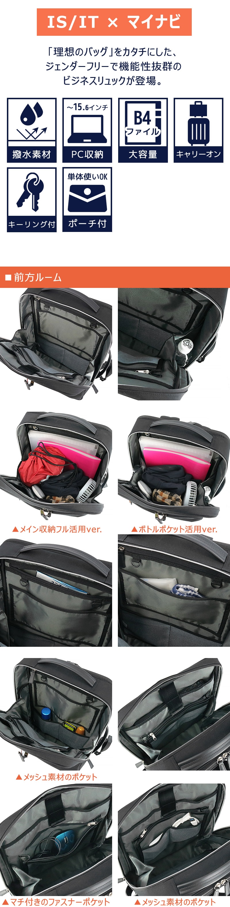イズイット バッグ リュック ビジネスリュック バックパック 撥水 15.6インチ対応 IS/IT マイナビ2024 B4 A4 975723 メンズ レディース 送料無料 誕生日プレゼント ギフト【正規代理店】 3.グレー -gryラッピング可能