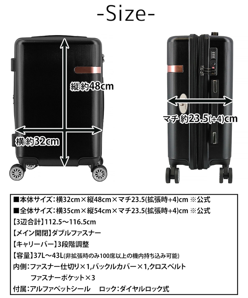 | 商品 | AIRLINE 拡張式スーツケース 37L~43L 機内持ち込み可能 | ||
