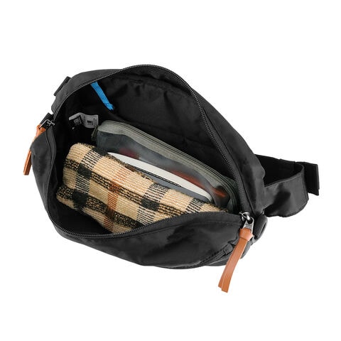 ウエストベルトを収納して小型ショルダーバッグとしても使える、2WAYヒップバック。