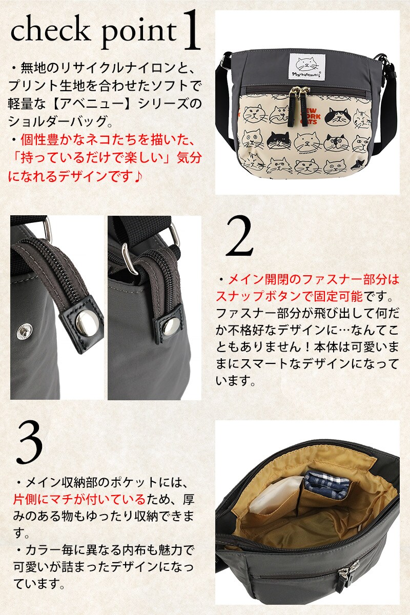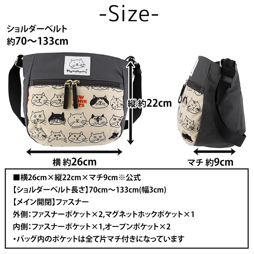 マンハッタナーズ バッグ ショルダー 斜めがけバッグ サブバッグ manhattaner's アベニュー ショルダーバッグ A5 0712474 レディース 送料無料 誕生日プレゼント ギフト 【正規代理店】 3.紋様猫顔 -0712474-5075ラッピング可能
