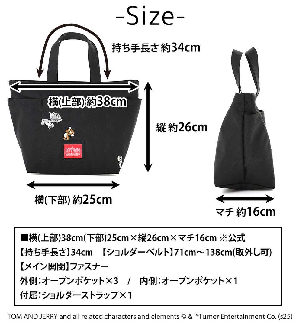 マンハッタンポーテージ トムとジェリー トートバッグ ショルダーバッグ 2WAY ホワイトストーントートバッグ A4 MP1360TJ85TH メンズ レディース 誕生日プレゼント ブラック -1000ラッピング可能