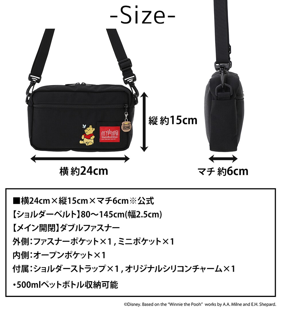 マンハッタンポーテージ Disney ショルダーバッグ くまのプーさん ジョガー L JPN VER2 B6 MP1404L2-500PH25 メンズ レディース キッズ 最新限定モデル 黒 送料無料 誕生日プレゼント ギフト 【正規代理店】ラッピング可能