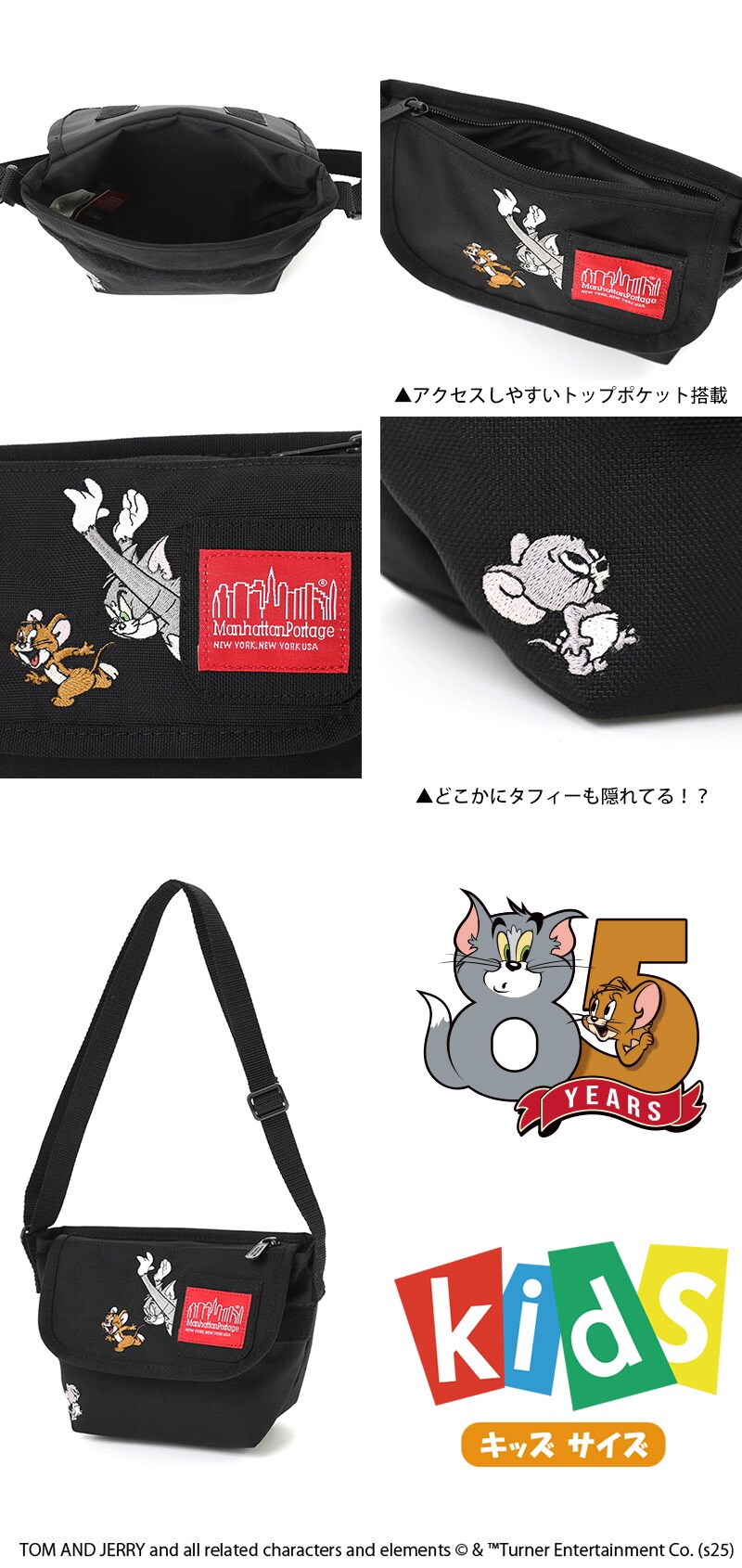 マンハッタンポーテージ / トムとジェリー / メッセンジャーバッグ ショルダー ショルダーバッグ XXXS フラップジッパーポケット MP1602FZPTJ85TH メンズ レディース キッズ プレゼント 正規代理店 ブラック -1000ラッピング可能