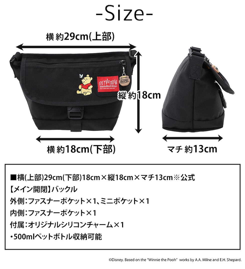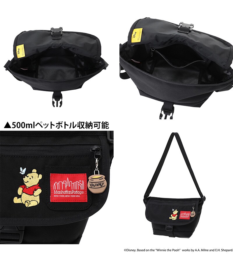 マンハッタンポーテージ Disney 斜めがけバッグ くまのプーさん ナイロンメッセンジャーバッグ XXS FZP B6 MP1603FZP500PH25 メンズ レディース キッズ 最新限定モデル 黒 送料無料 誕生日プレゼント ギフト 【正規代理店】ラッピング可能