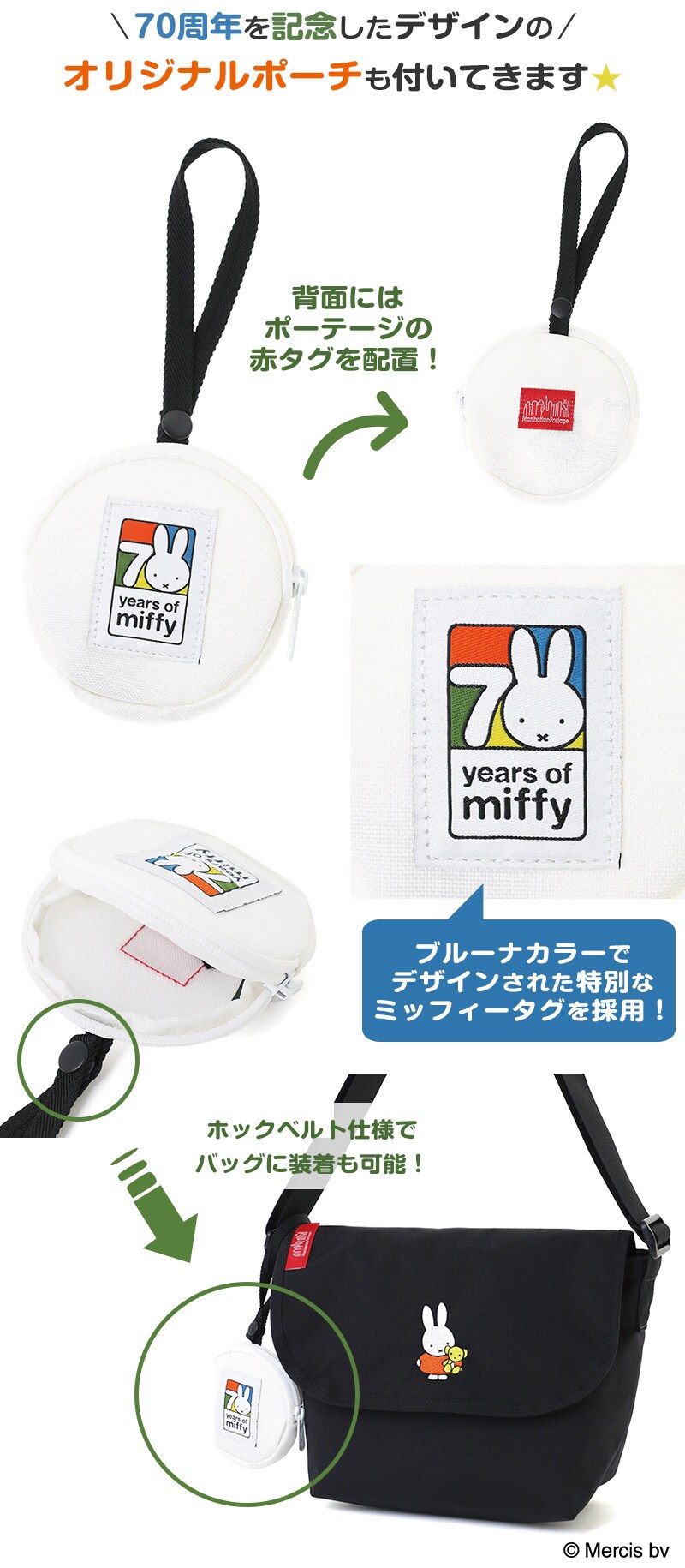 「miffy」70周年限定記念ロゴを配したポーチも付く等、スペシャルなバッグが揃っています。