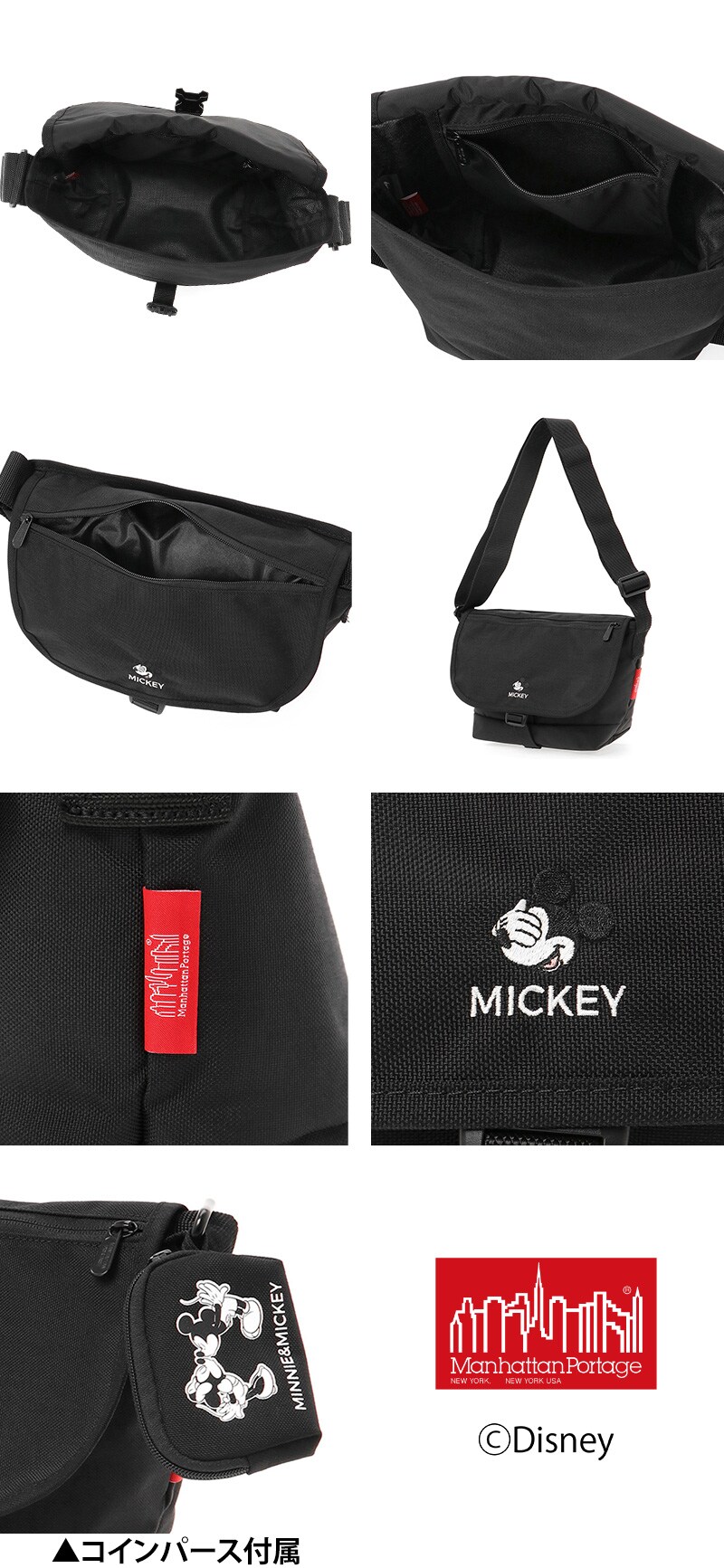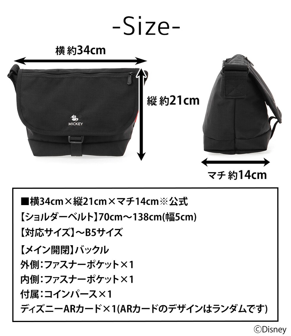 マンハッタンポーテージ バッグ Disney ミッキー Mickey Mouse ナイロンメッセンジャーバッグJRフラップジッパーポケット B5 MP1605JRFZPMIC24 メンズ レディース 誕生日プレゼント 正規代理店 ブラック -1000ラッピング可能