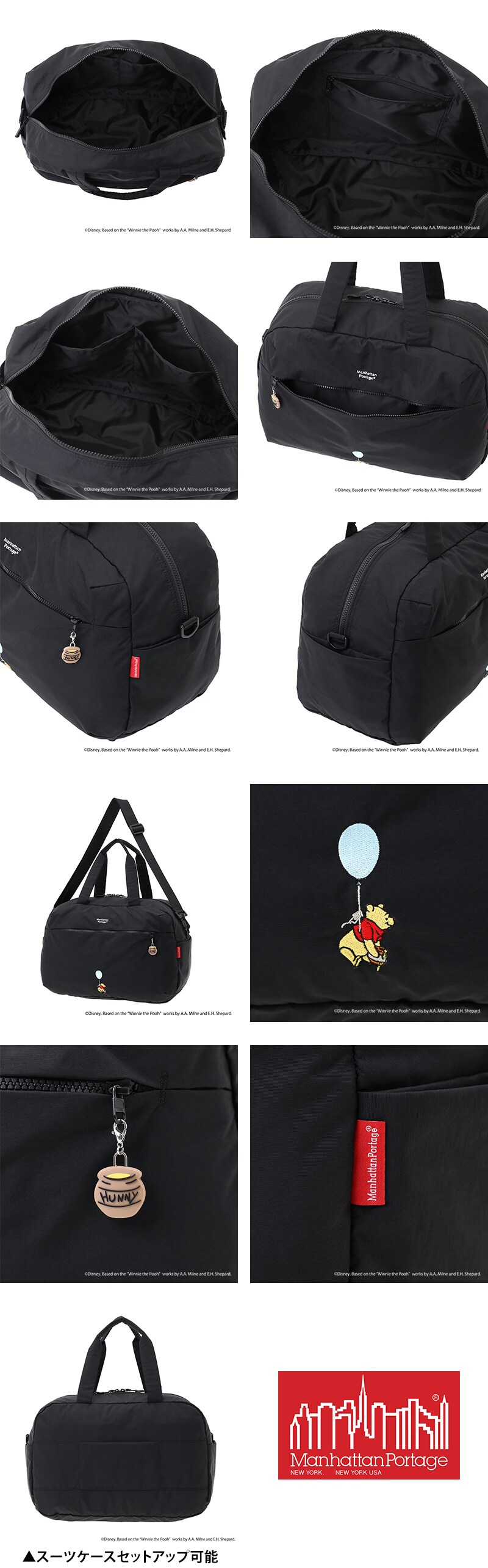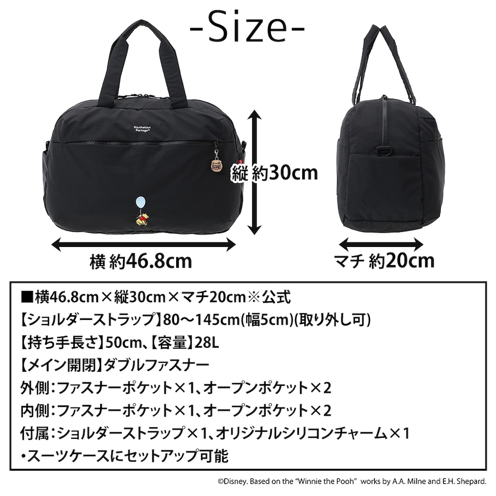 マンハッタンポーテージ Disney 2WAYバッグ ショルダー くまのプーさん パルメットボストンバッグ B4 A4 MP1826TSPH25 メンズ レディース キッズ 最新限定モデル 黒 送料無料 誕生日プレゼント ギフト ラッピング可能 【正規代理店】 ブラック -1000