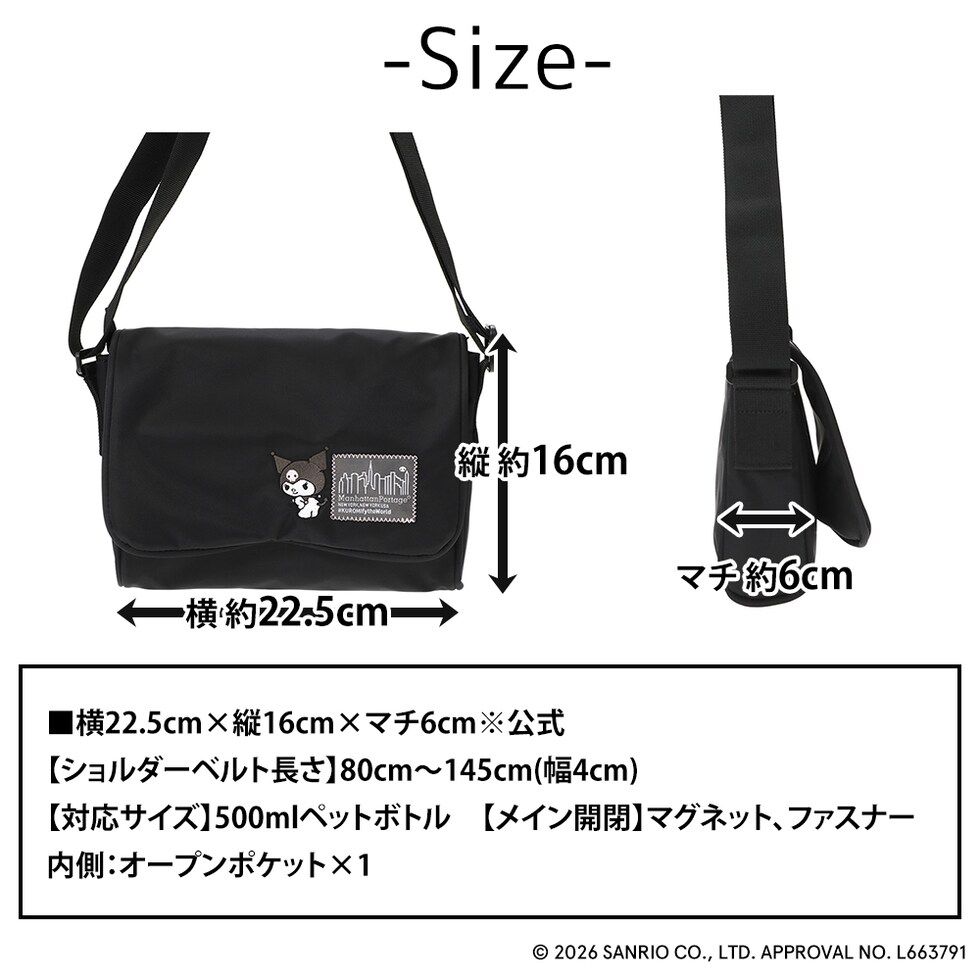 | サイズ(約) ※当店実寸値 | 公式サイズ 横22.5cm×縦16cm×マチ6cm 【ショルダーベルト長さ】80cm~145cm(幅4cm) 【対応サイズ】500mlペットボトル | ||