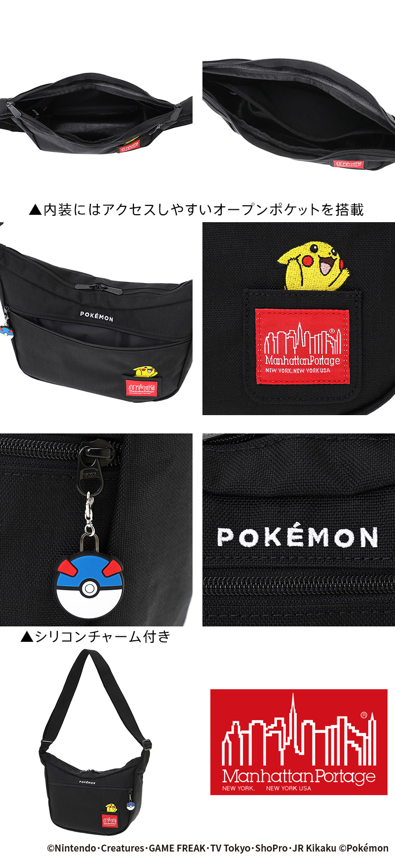 マンハッタンポーテージ ポケモン ピカチュウ デュエットショルダーバッグ B5 MP2409PKMN25 メンズ レディース キッズ 限定モデル 送料無料 最強配送 誕生日プレゼント ギフト 【正規代理店】 ブラック -1000ラッピング可能