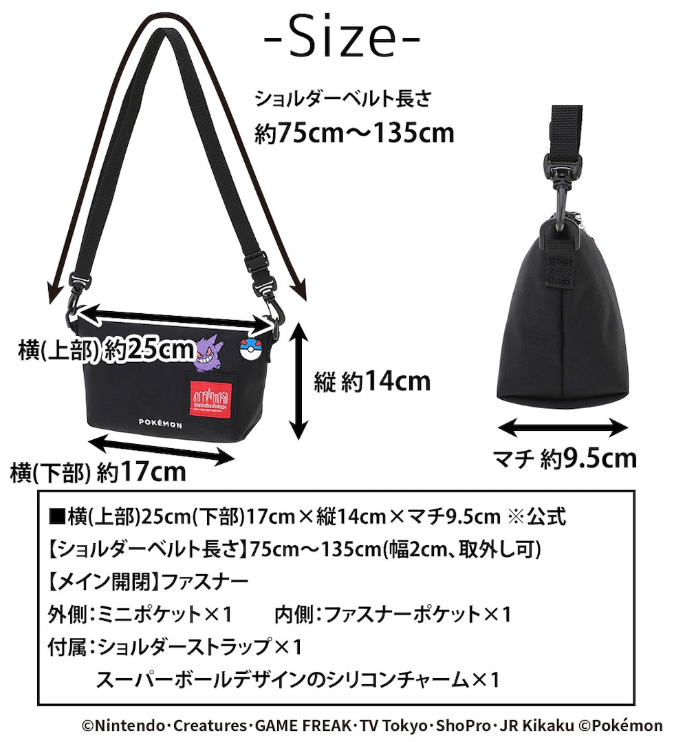 | 備考 | ポケットモンスター、略してポケモンは、たくさんの謎を秘めたふしぎな生き物。 1996年に誕生したゲームをはじめ、カードゲームやTVアニメ、映画、アプリ、グッズなど幅広く展開されグローバルな人気を得ています♪ 【メイン開閉】ファスナー 外側/ ミニポケット×1 内側/ ファスナーポケット×1 付属/ ショルダーストラップ×1 スーパーボールデザインのシリコンチャーム×1 キーワード : Manhattan Portage ポケモン 新作 コレクション 特別 スペシャル 限定 売れ筋 無地 ワンポイント ミニバッグ サブバッグ 斜め掛け 普段使い 黒 お出かけ イベント 旅行 トラベル かばん カバン ペアルック 刺繍 モンスターボール チャーム付き ブランドロゴ 10代 20代 30代 40代 耐水性 耐久性 軽量 ナイロン 入学祝い 卒業祝い 進学 新卒 社会人 就職祝い 成人 誕生日 記念日 ご褒美 自分用 プレゼント ギフト メンズ レディース 子供 こども 男性 女性 通勤 通学 ビジネス 学生 高校 短大 大学 予備校 ブランド ポイント消化 ニューバッグワカマツ ニューバックワカマツ | ||