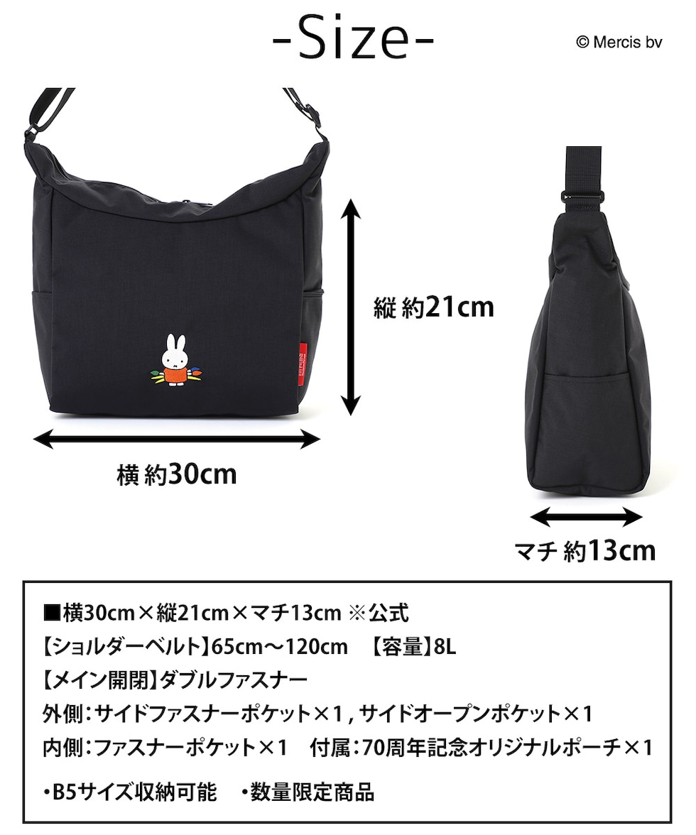 「miffy」70周年限定記念ロゴを配したポーチも付く等、スペシャルなバッグが揃っています。