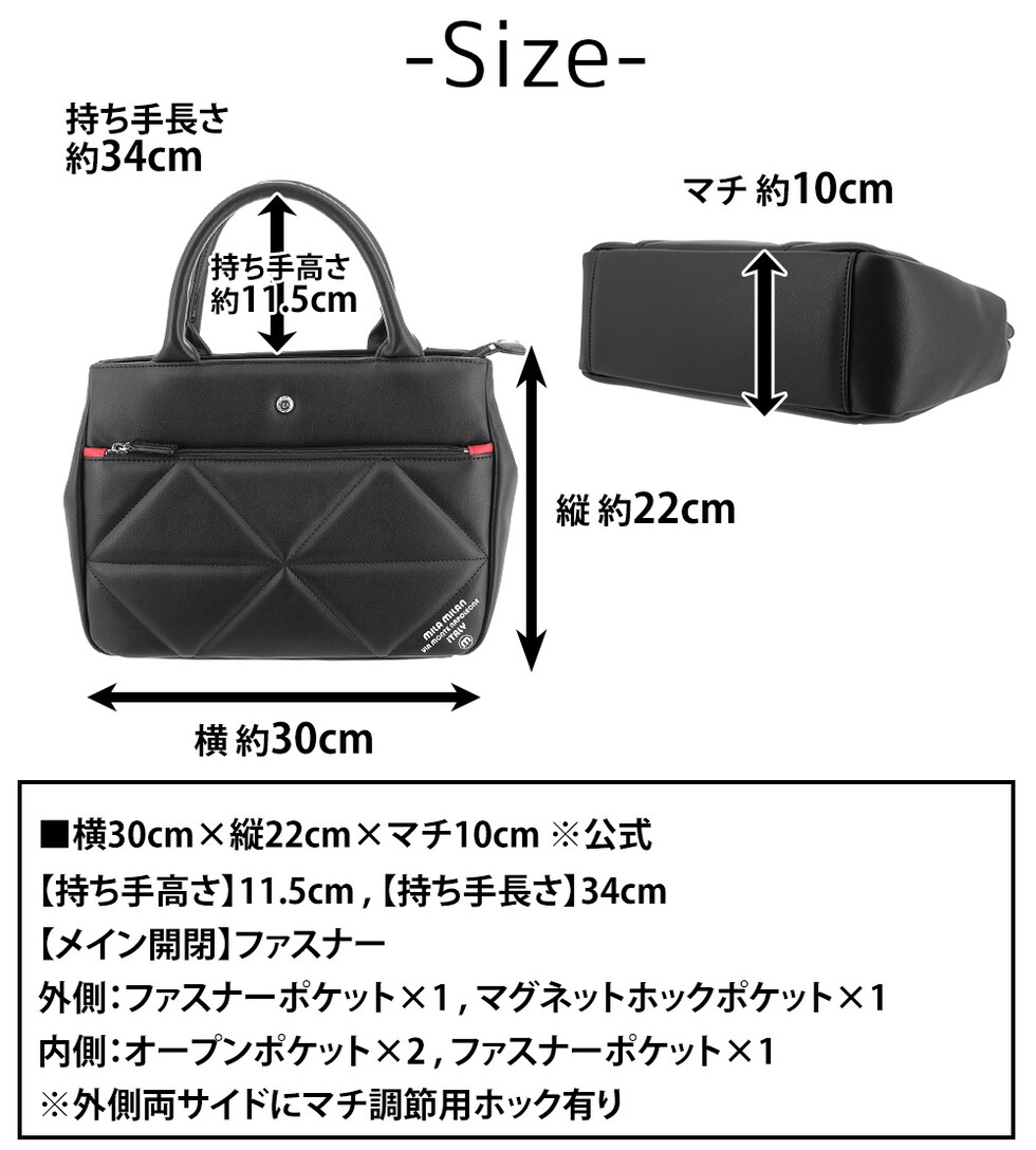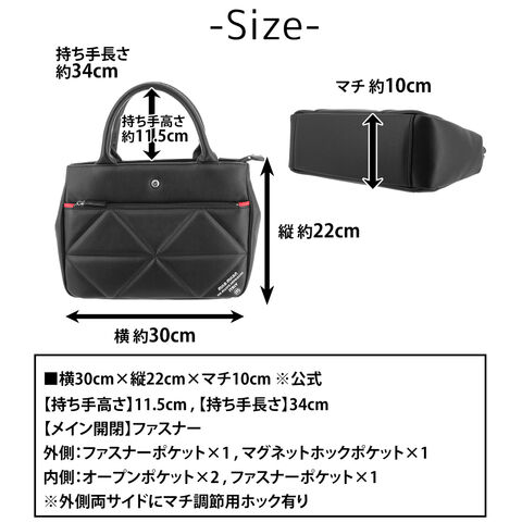 | サイズ(約) ※当店実寸値 | 公式サイズ 横30cm×縦22cm×マチ10cm 【持ち手高さ】11.5cm 【持ち手長さ】34cm | ||
