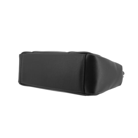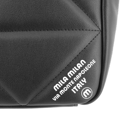 本体色に合わせたロゴ刻印入りのオリジナルブローチが、ソフトな素材感とハリ感のあるキルティングにアクセントを与えています。