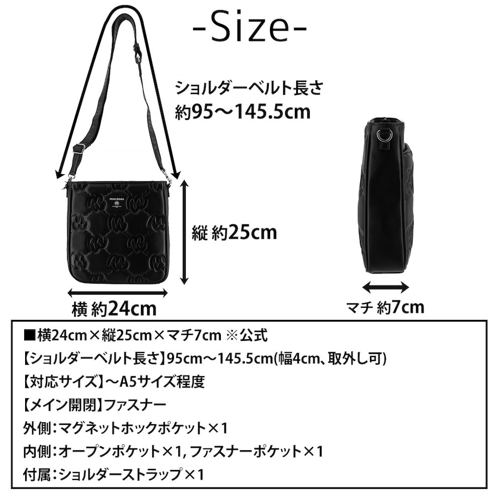 | サイズ(約) ※当店実寸値 | 公式サイズ 横24cm×縦25cm×マチ7cm 【ショルダーベルト長さ】95cm~145.5cm(幅4cm、取外し可) 【対応サイズ】~A5サイズ程度 | ||