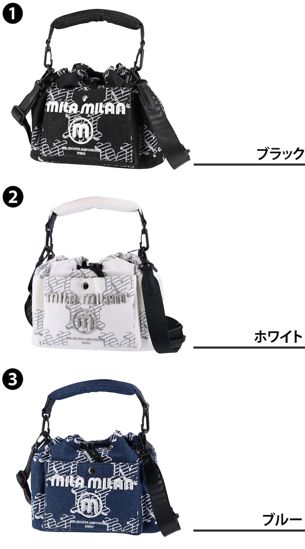 ミラ・ミラン バッグ ショルダーバッグ ハンドバッグ 2WAY mila milan デニーモ 巾着ショルダーバッグ A5サイズ 264122 メンズ レディース 送料無料 誕生日プレゼント ギフト ラッピング無料 【正規代理店】 3.ブルー -blu