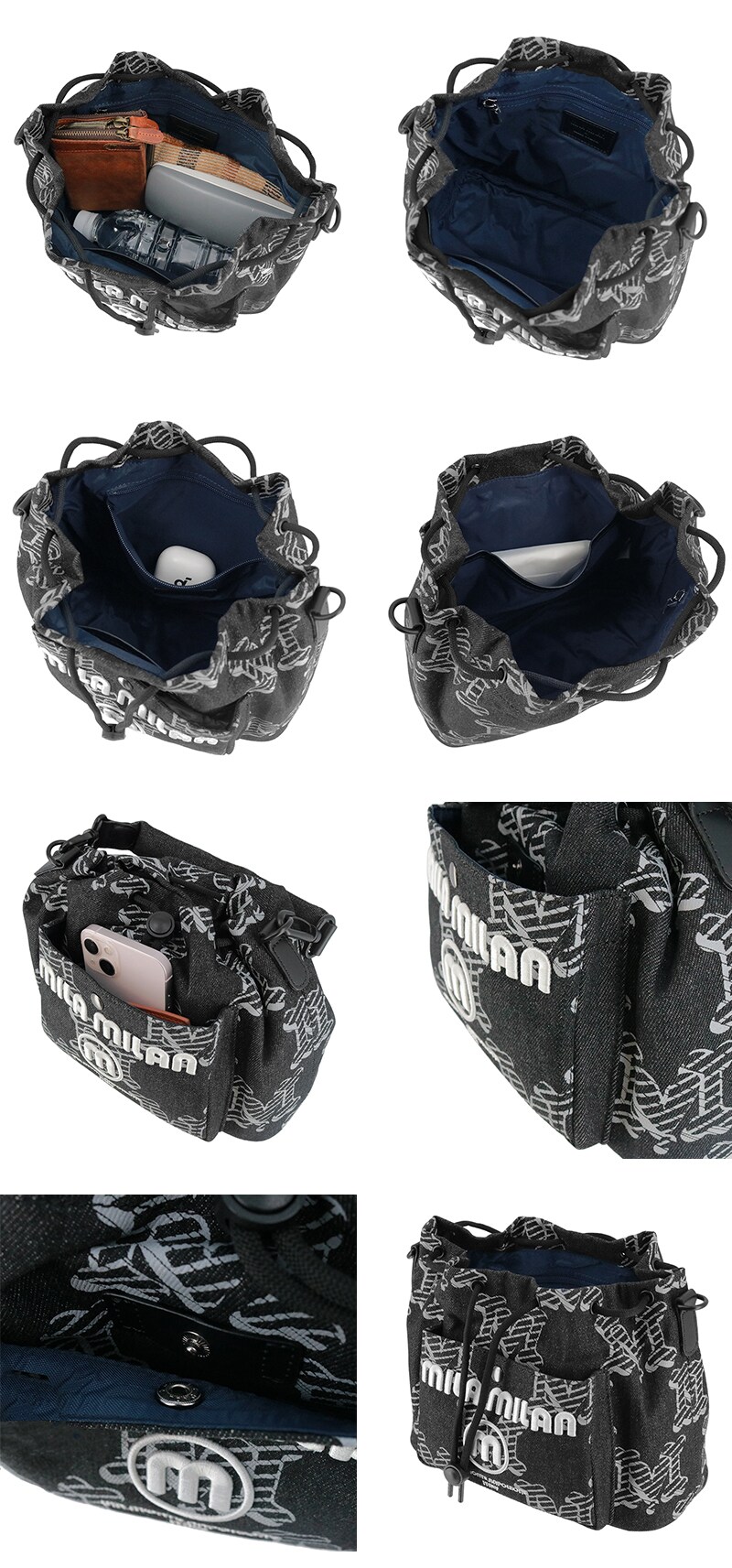 デニムライクな表情とモノグラムデザインを、巾着フォルムで楽しめるショルダーバッグ。