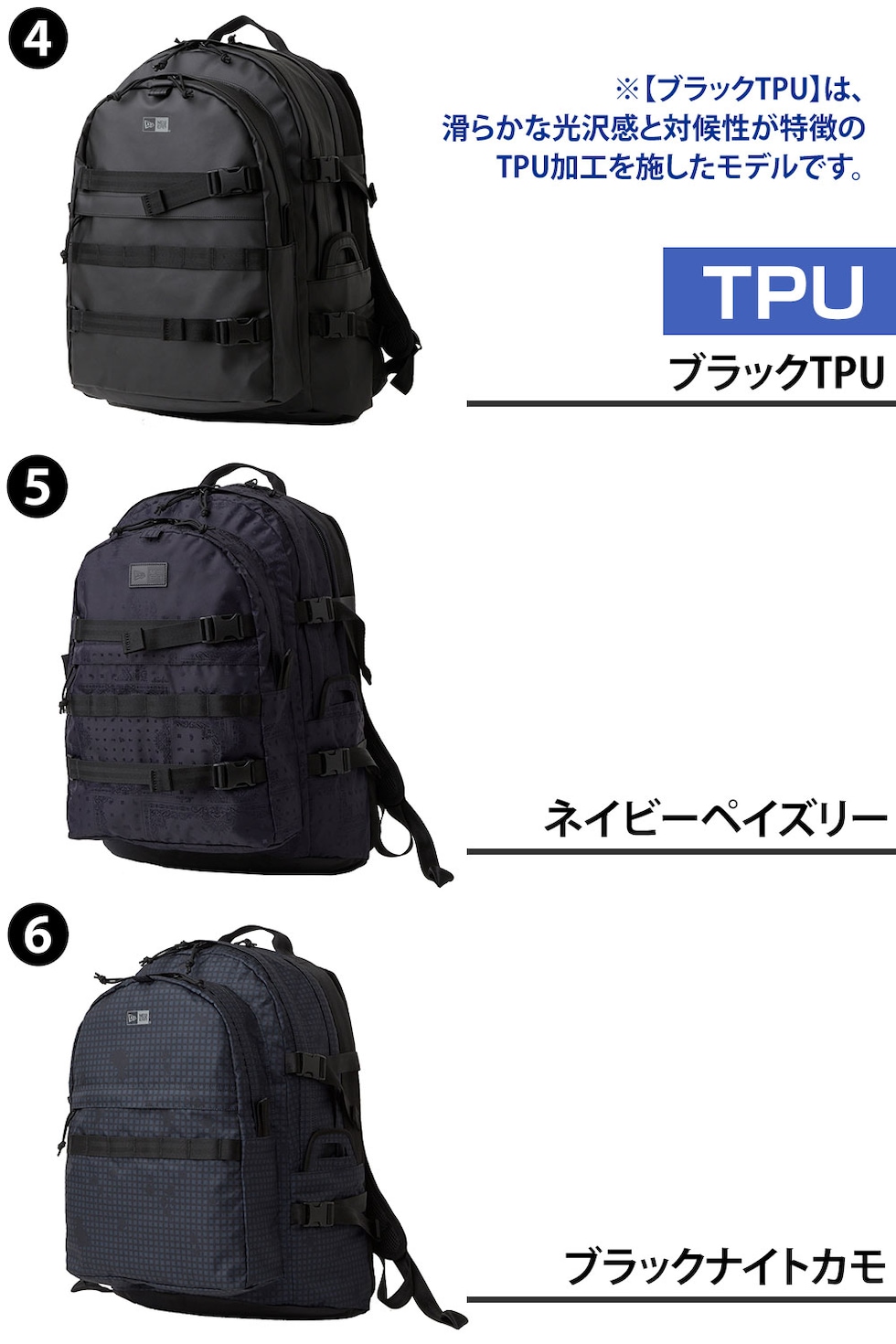| カラー | 1.ブラック(-99x14521349) 2.ブラックxホワイト(-99x14521347) 3.ライトウェイトロゴブラック(-99x14521350) 4.ブラックTPU(-14750920) 5.ネイビーペイズリー(-14750922) 6.ブラックナイトカモ(-14750923) 7.ストーン(-99x14521348) 8.オリーブ(-99x14655362) | ||
