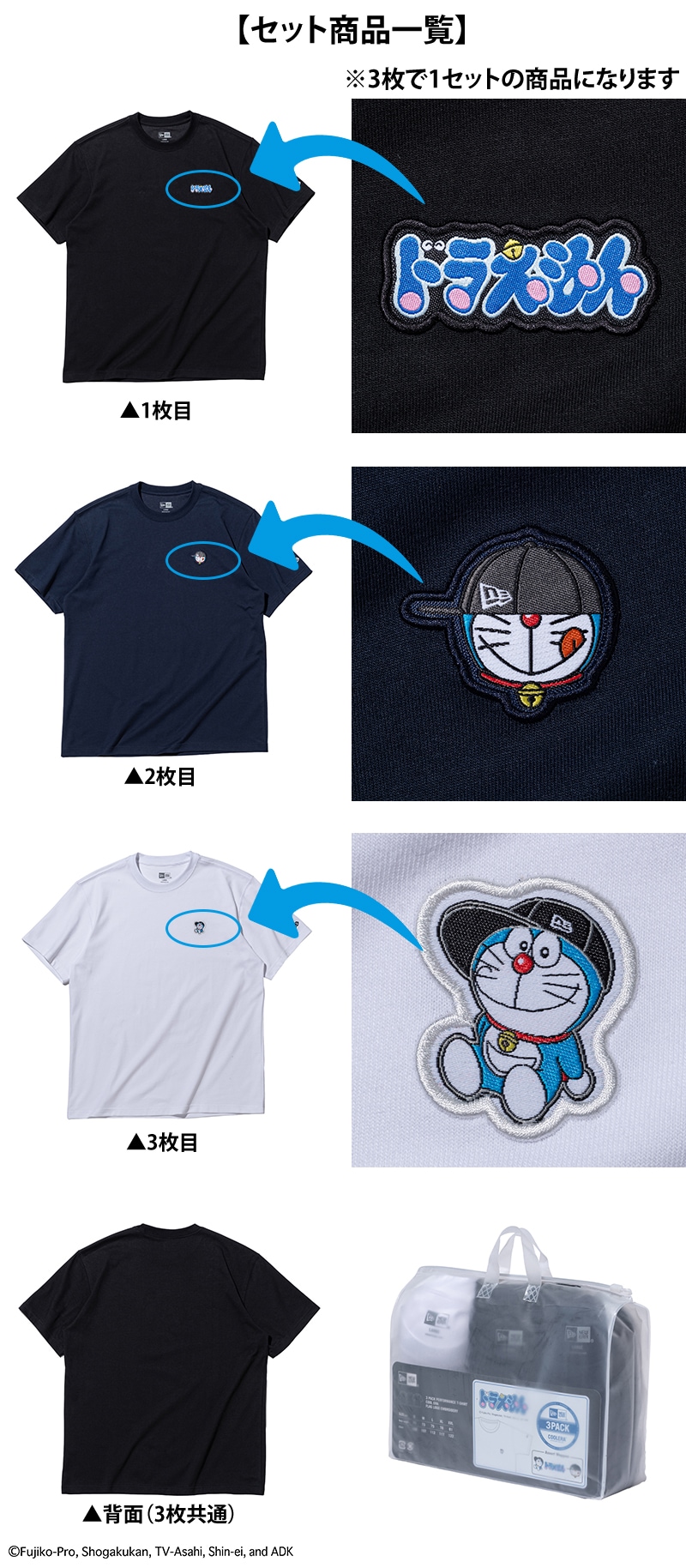 【2026年新作】 ニューエラ Tシャツ 半袖 ドラえもん コラボ 3枚セット NEW ERA 3Pパックティー S M L XL メンズ レディース キッズ 限定モデル 送料無料 誕生日プレゼント ギフト ラッピング無料 正規代理店 2.Mサイズ -14935374m
