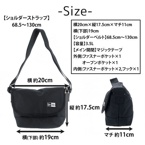 | サイズ(約) ※当店実寸値 | 公式サイズ 横20cm×縦17.5cm×マチ11cm 横(下部)19cm 【ショルダーベルト】68.5cm~130cm 【容量】3.5L | ||