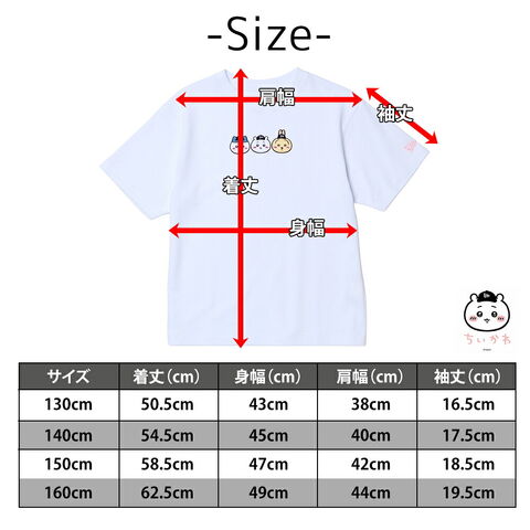 | サイズ(約) ※当店実寸値 | 公式サイズ 130cm:着丈 50.5cm、身幅 43cm、肩幅 38cm、袖丈 16.5cm 140cm:着丈 54.5cm、身幅 45cm、肩幅 40cm、袖丈 17.5cm 150cm:着丈 58.5cm、身幅 47cm、肩幅 42cm、袖丈 18.5cm 160cm:着丈 62.5cm、身幅 49cm、肩幅 44cm、袖丈 19.5cm | ||