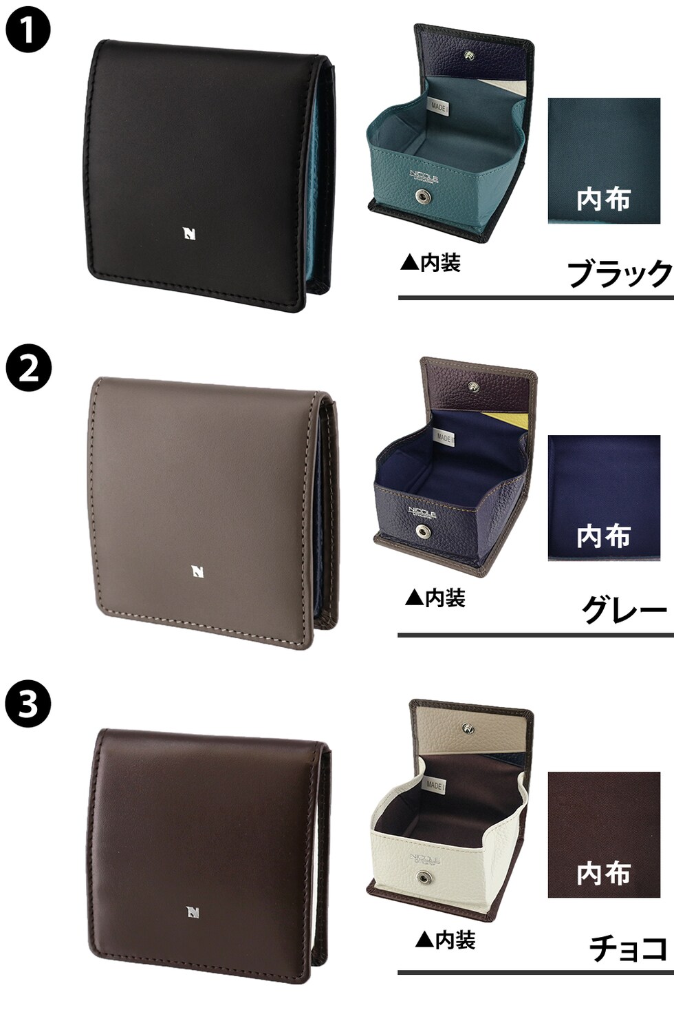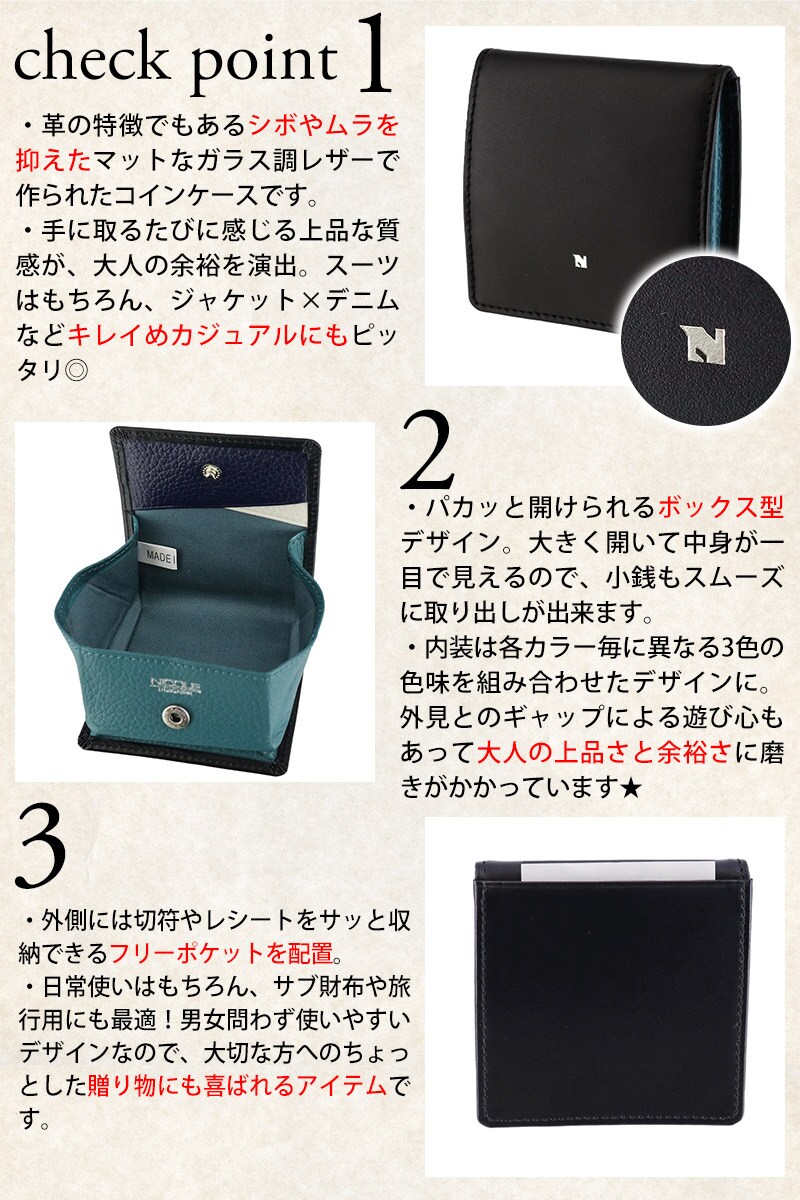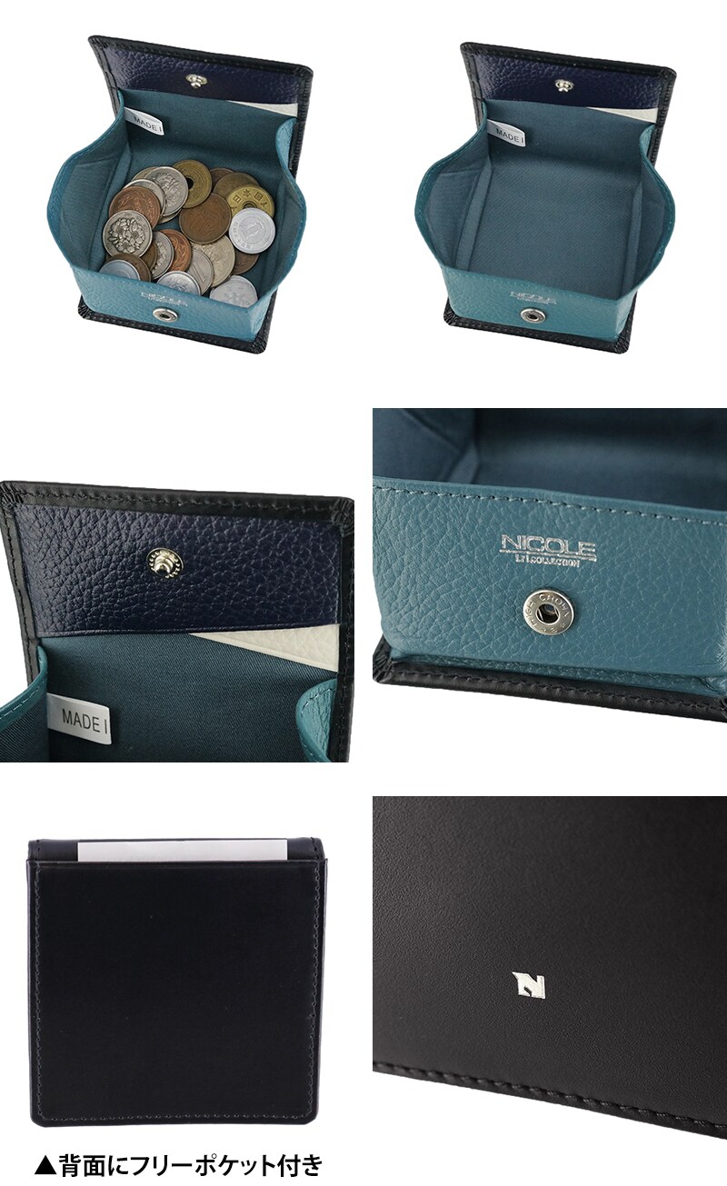 ニコル 財布 コインケース 小銭入れ ボックス型 コンパクト 薄型 本革 NICOLE ビブラント 7306305 メンズ レディース 送料無料 誕生日プレゼント ギフト 【正規代理店】 2.グレー -11ラッピング可能
