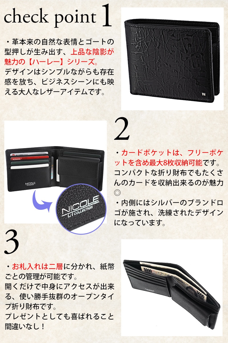 ニコル 財布 二つ折り財布 2つ折り財布 折財布 ミニ財布 小銭入れあり 薄型 本革 NICOLE ハーレー 7306400 メンズ レディース 送料無料 誕生日プレゼント ギフト ラッピング無料 【正規代理店】 3.ブルー -65