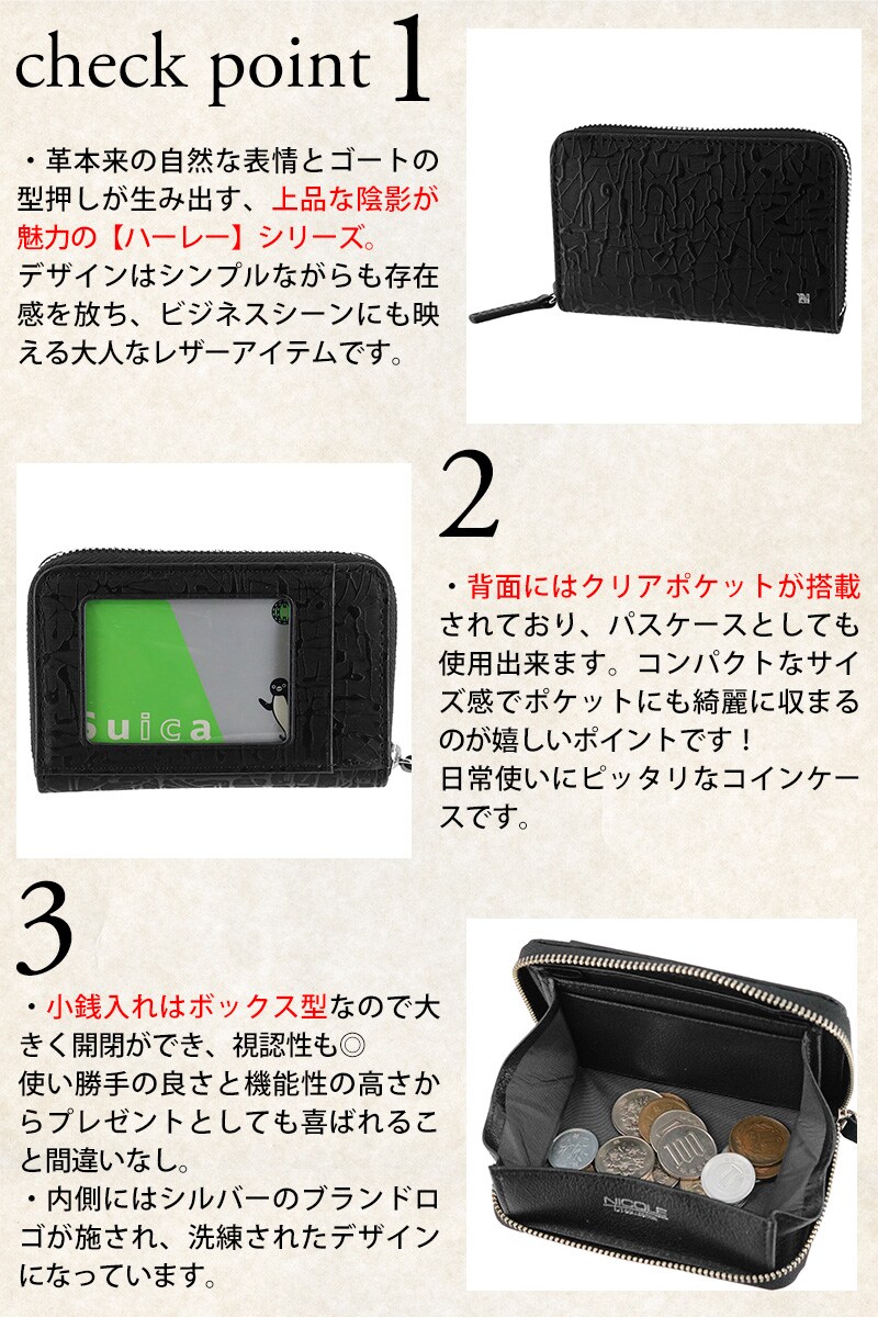 ニコル 財布 コインケース パスケース ボックス型小銭入れ ミニ財布 薄型 本革 NICOLE ハーレー 7306403 メンズ レディース 送料無料 誕生日プレゼント ギフト ラッピング無料 【正規代理店】 2.グレー -11
