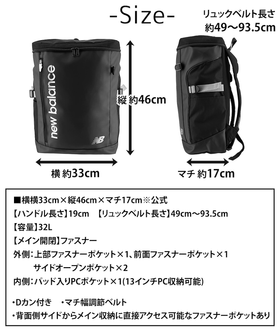 | サイズ(約) ※当店実寸値 | 公式サイズ 横33cm×縦46cm×マチ17cm 【ハンドル長さ】19cm 【リュックベルト長さ】49cm~93.5cm 【容量】32L | ||