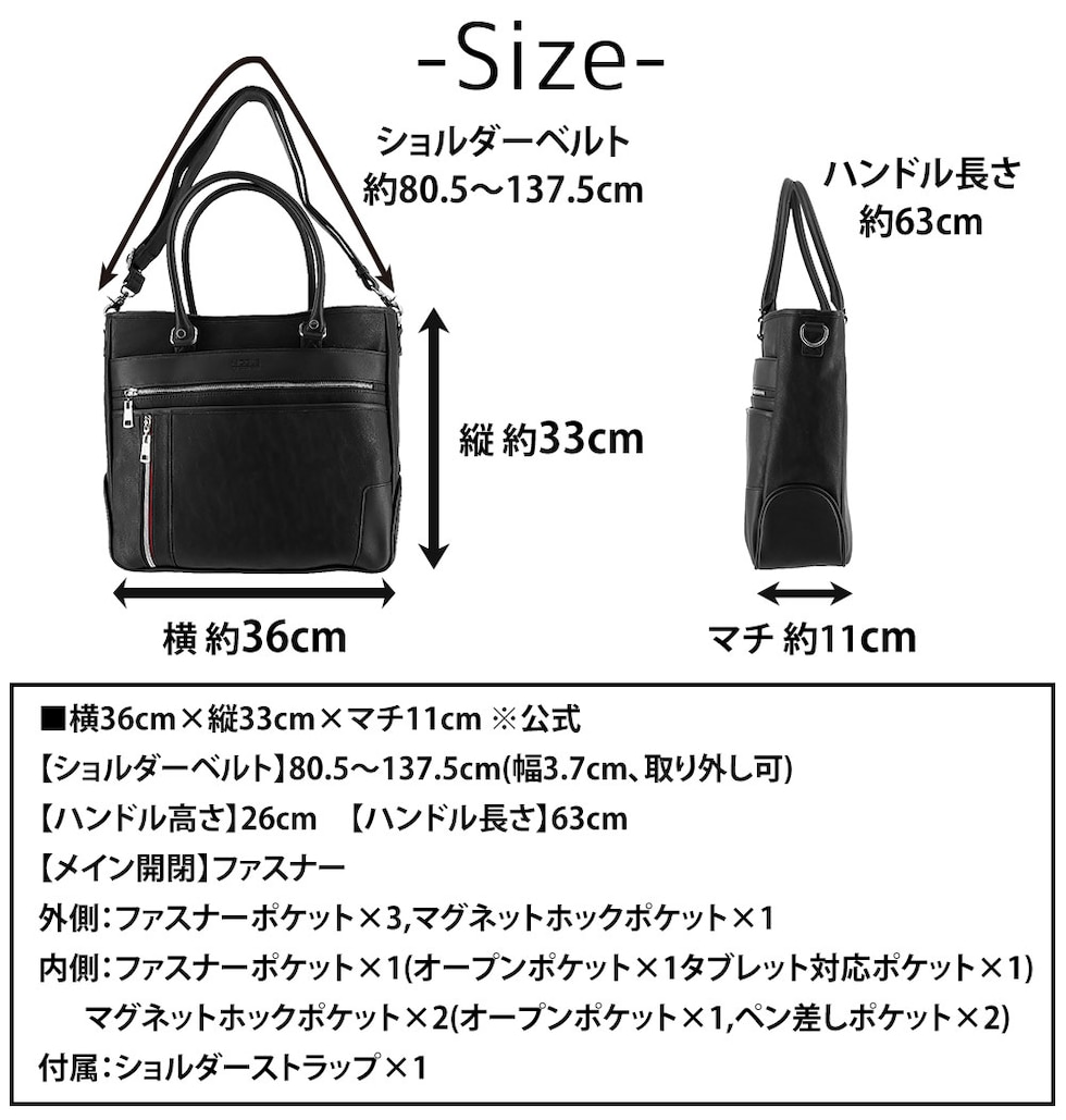 | サイズ(約) ※当店実寸値 | 公式サイズ 横36cm×縦33cm×マチ11cm 【ショルダーベルト】80.5~137.5cm(幅3.7cm、取り外し可) 【ハンドル高さ】26cm 【ハンドル長さ】63cm | ||