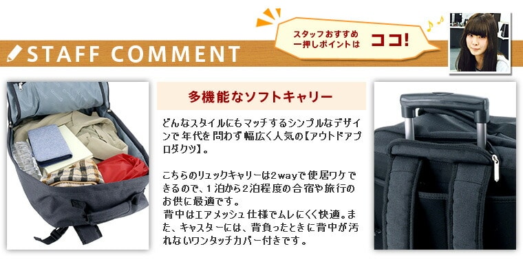 | アウトドア OUTDOOR PRODUCTS ! リュックキャリー 62402 |