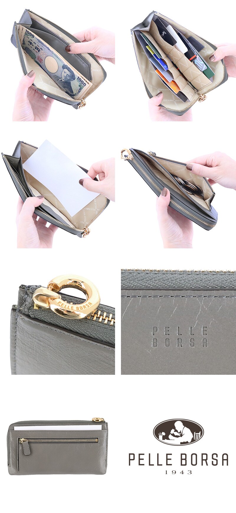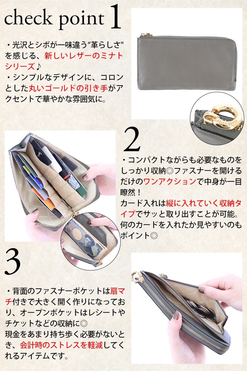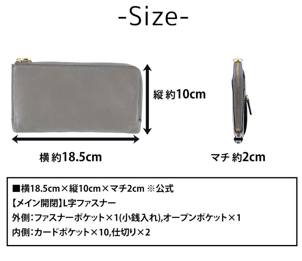 ペレボルサ PELLE BORSA ミナト L字ファスナーコンパクト長財布 Minato 203500 1.グレー -grラッピング可能