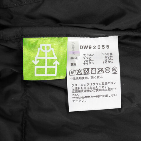 | 素材 | 表地:40D Recycled Nylon Ripstop(ナイロン100%) 中わた:GreenRecycled CLEANDOWN(ダウン80%、フェザー20%) 肩部分・裏地:Recycled Nylon Cloth(ナイロン100%) | ||