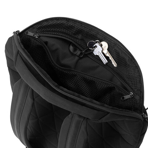 薄型ながら収納力を備えたスクエアフォルムで、日常のあらゆるシーンに馴染むミニマルリュック。