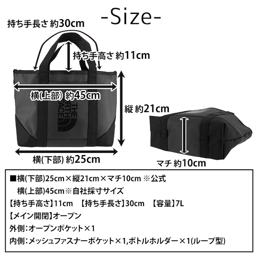 | サイズ(約) ※当店実寸値 | 公式サイズ 横(下部)25cm×縦21cm×マチ10cm 自社採寸サイズ 横(上部)45cm 【持ち手高さ】11cm 【持ち手長さ】30cm 【容量】7L | ||