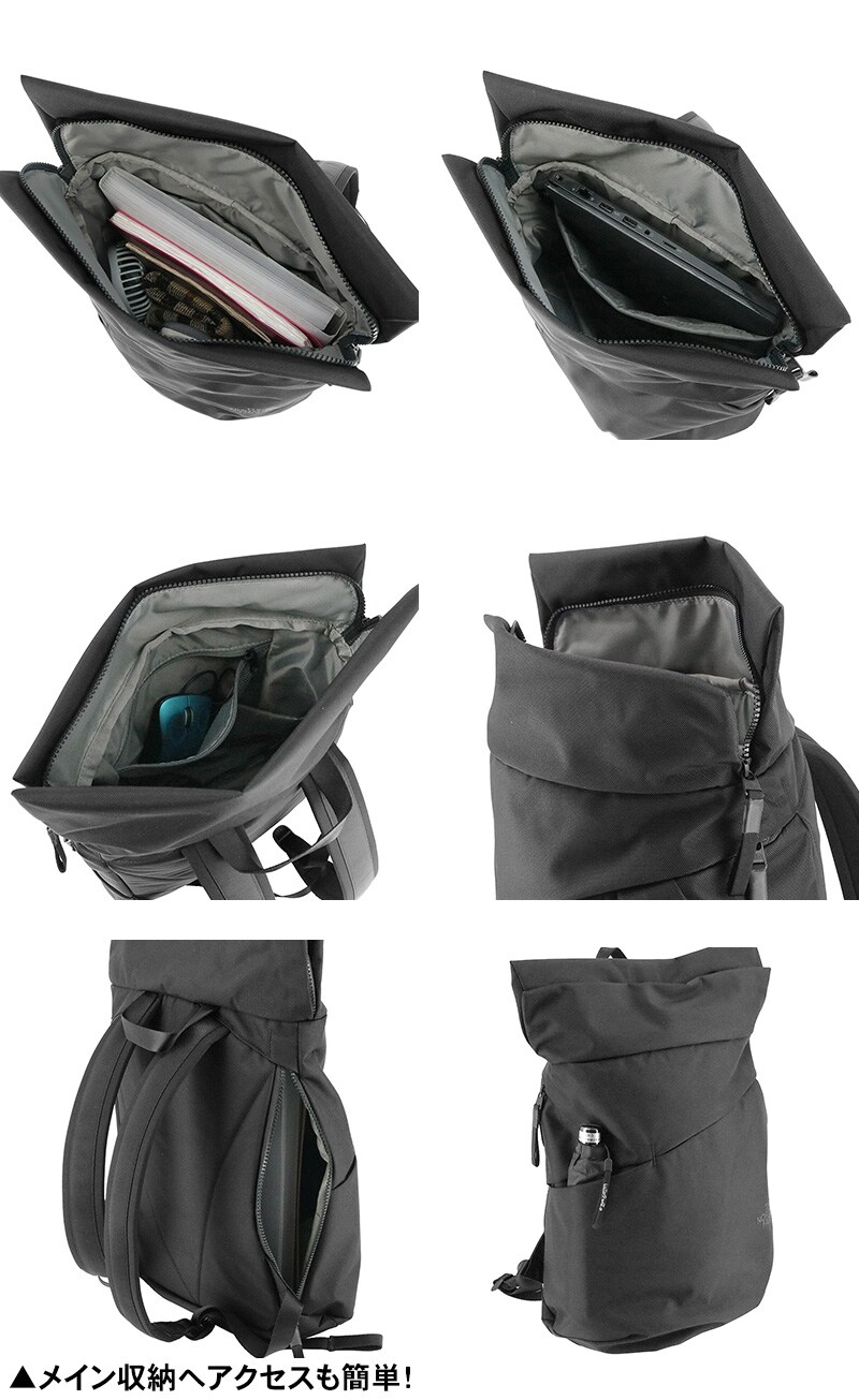 13インチまでの電子機器が入るパッド入りポケットや、出し入れがしやすいよう開口部が斜めのフロントポケットなど、実用性とデザイン性を兼ね備えた作りになっています。