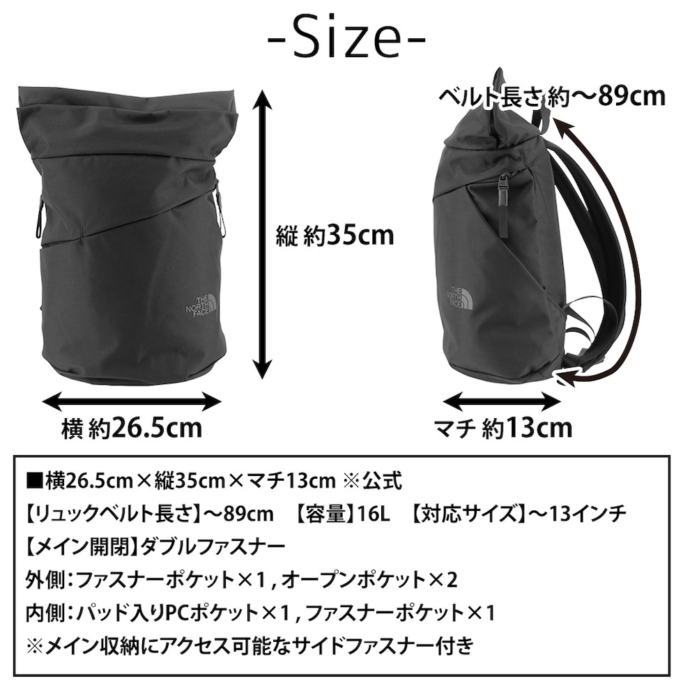 | サイズ(約) ※当店実寸値 | 公式サイズ 横26.5cm×縦35cm×マチ13cm 【リュックベルト長さ】~89cm 【容量】16L 【対応サイズ】~13インチ | ||