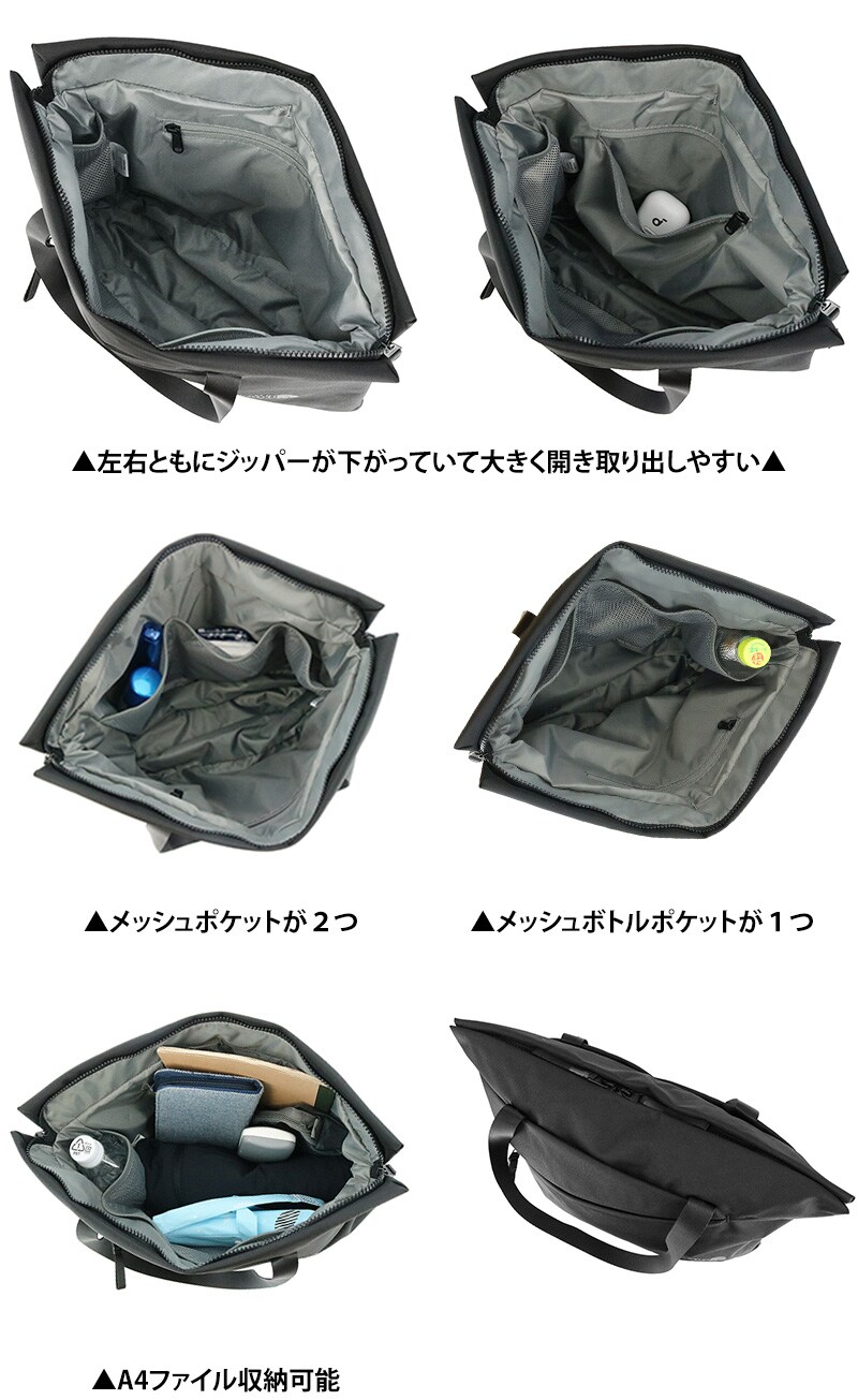 メイン収納部が広いので、A4ファイルや財布、ポーチ等をスムーズに出し入れ可能。