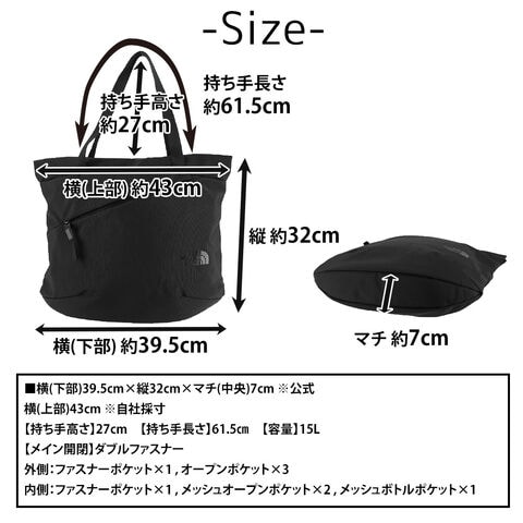 | サイズ(約) ※当店実寸値 | 公式サイズ 横(下部)39.5cm×縦32cm×マチ(中央)7cm 自社採寸サイズ 横(上部)43cm 【持ち手高さ】27cm 【持ち手長さ】61.5cm 【容量】15L | ||