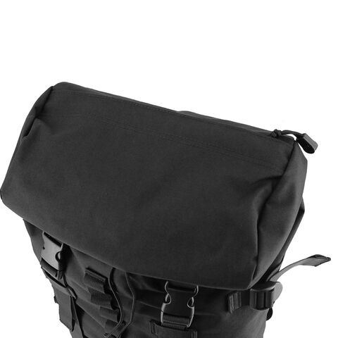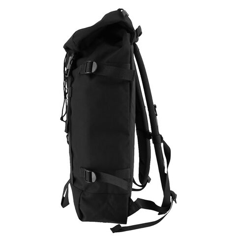 バックルとドローコード、2種類の開閉方法を採用したロールトップ風デザインのバックパック。